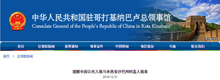 中国驻哥打基纳巴卢总领事馆再次提醒,请在出发前充分了解旅游目的地资讯,注意:乘客从中国、第三国直飞至沙巴州各机场(包括哥打基纳巴卢、斗湖、山打根等),以及从马来西亚其他城市(包括吉隆坡、槟城、古晋等)飞来沙巴州各机场,无论入境或转机,都必须在落地时先到机场移民柜台办理入境盖章手续。如未盖入境章,出境时可能会被沙巴移民部门拘押和罚款。