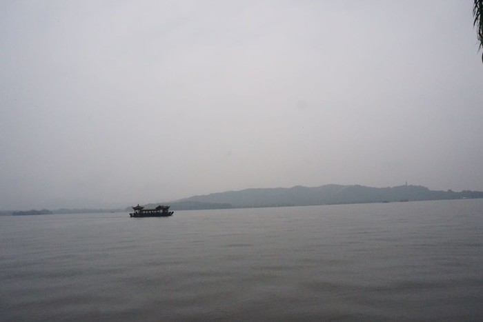 烟雨中的西湖灰蒙蒙的,别有一番韵味。