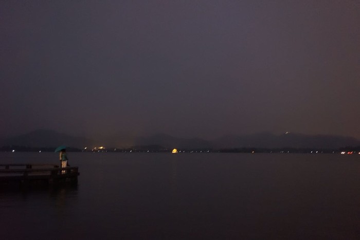 西湖不算看过的湖中有什么特别的。只是那天下着雨,雨滴落在湖面上,一滴接着一滴,湖面被敲打着荡漾起点点圈圈的涟漪,和着杨柳垂直入湖,随风轻轻飘扬摇摆,是风在说话。雨不大,撑着伞,和闪电沿着湖不停地走。凉凉的风,带着雨滴飘来,秋天的杭州竟有股凉意,特别适合来一杯热拿铁。