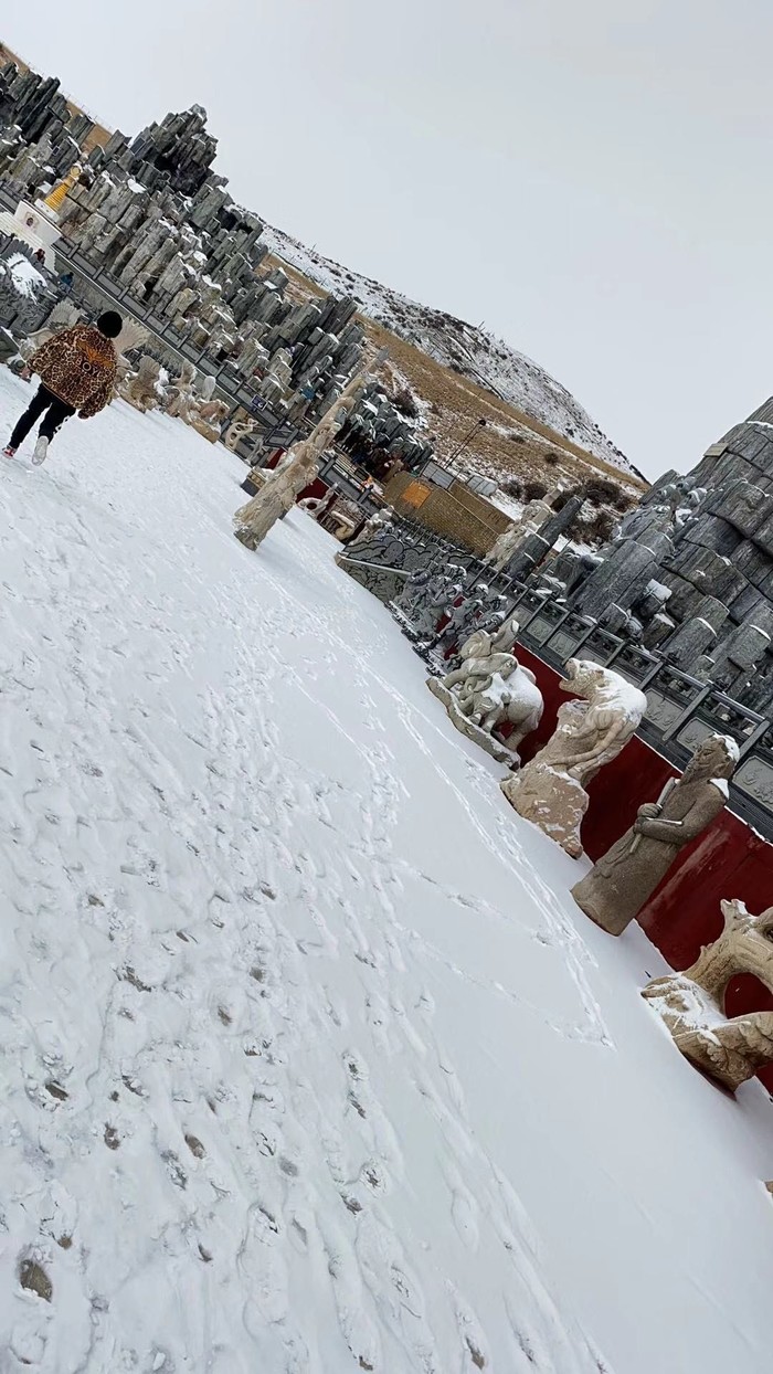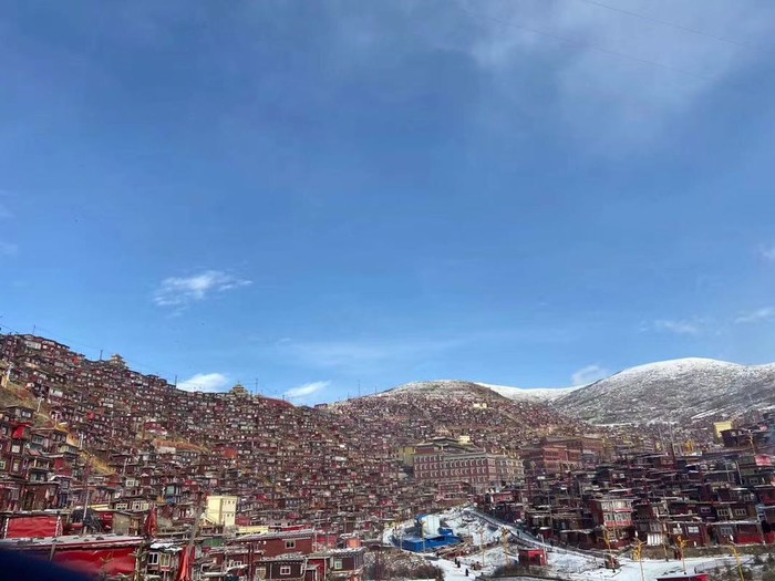 下午一点驱车去色达 晚上十一点多到 (冬季注意冰雪路 自驾游记得买防滑链) 第五天中午驱车过去看天葬(色达县离天葬台只有二十几公里 一点钟差不多就开始了 建议十二点就过去 反正我们开了一个小时) 三点钟又去了五明佛学院 到处都是红房子也没什么看的 就很后悔来这里 五点驱车返程 一路上开得小心翼翼 晚上八点来到炉霍县休息。第六天下午一点准时出来 一路的国道风景简直美如画 特别是走在草原上(折多山下来有两条路 建议不要直接下 观景台下来几百米处直行) 蓝天白云 近处是牛羊 远处是雪山 总算不虚此行。路过墨石公园 但是太晚了就没进去。六点多到达康定 晚上的康定广场看山好看 还有康定特色干巴耗牛肉