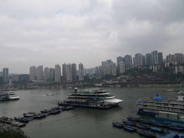 从鹅岭公园出来,腿有些酸,打车直奔朝天门码头。古时的朝天门是“迎官接圣”的水码头,今天的朝天门客运码头,是俯瞰两江汇流,纵览沿江风光的好去处。新建的来福士广场已成为重庆的新地标。