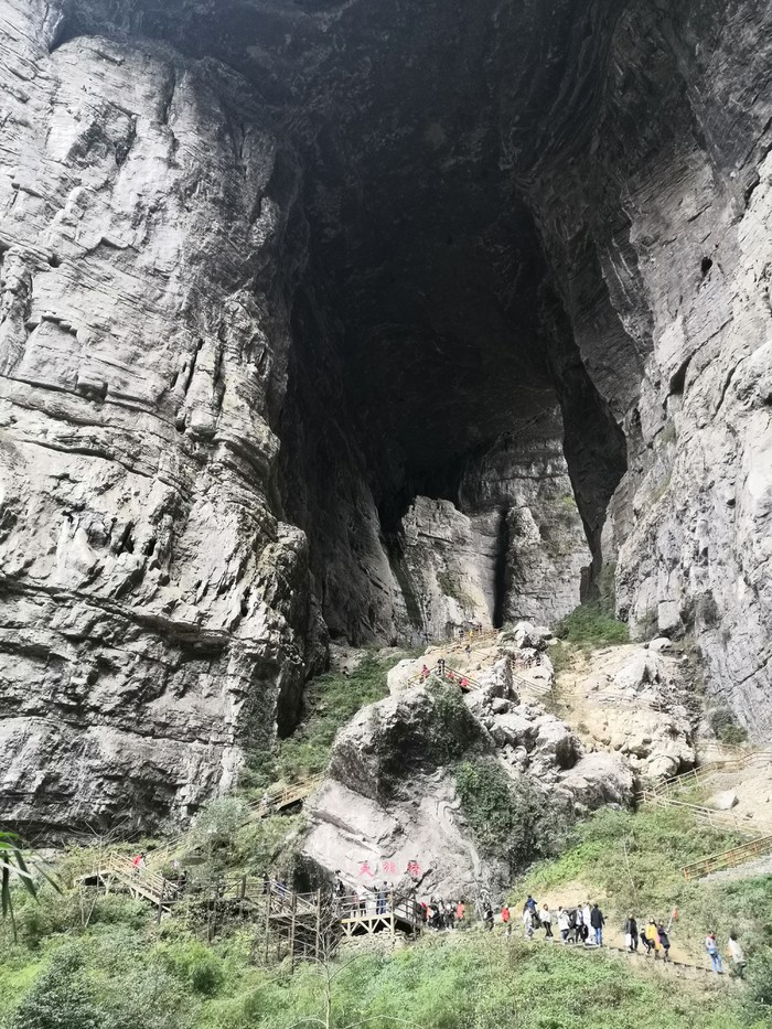 第三天早早赶往重庆北站,乘火车去武隆。好久没有坐K字头的火车了,车厢有些老旧,空间狭窄,最让人适应不了的是不断有人在车厢间隔处吸烟,那浓烈刺鼻的烟味萦绕在车厢内久久挥之不去。好在只有两个小时车程,只好一忍再忍。火车穿过一个又一个隧道,手机信号也时有时无。火车到达武隆站,出站后有客运车到仙女山镇游客中心,每人10元。武隆天坑地缝风景名胜区,包括天生三桥和龙水峡地缝,需单独购票,65岁(含)以上老人免票。车程40分钟,到达游客中心正好酒店来接,放好行李,到游客中心乘景区旅游车先去天生三桥。