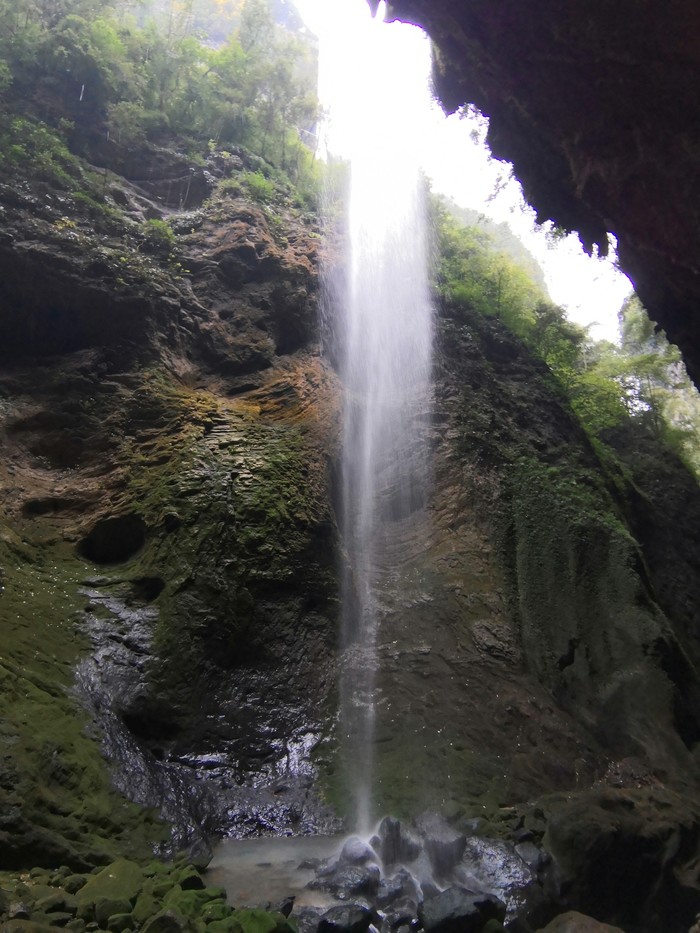 最后来到黑龙桥,桥洞高而狭长,洞内光线昏暗,像一条黑龙盘旋洞顶。黑龙桥多生泉瀑,珍珠泉、雾泉、一线泉、三迭泉,风格迥异堪称绝景。