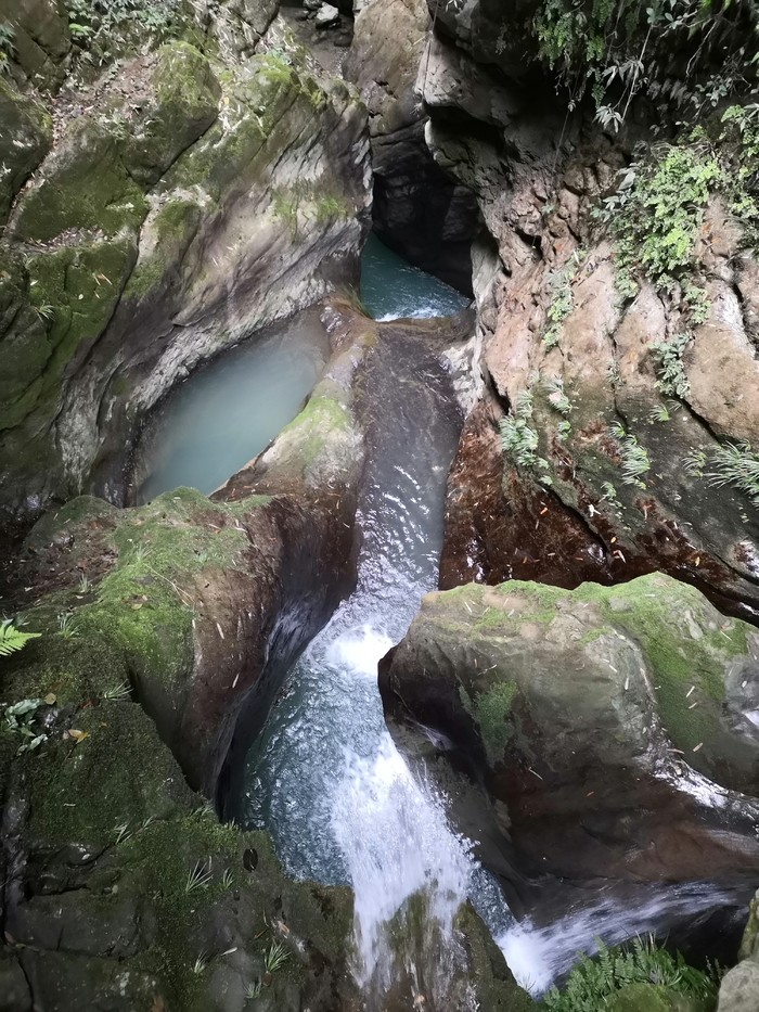 峡谷全长5公里,游程2公里,最窄处仅1米,仰头望天,一线天光;峡谷两边刀壁耸屹,岩壁绝险,山道弯弯,峰回路转。栈道贯穿其间,俯瞰深邃不见其底,深入谷中,泉瀑飞溅,幽幻无穷。玉瀑银帘飞泻而下,谷底深潭碧绿盈动,让人不得不感叹大自然的鬼斧神工。