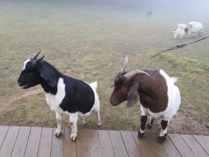 大草原上散养的羊群,一点也不怕人,如果你招呼它,有的会走过来闻你手上是不是有吃的,转而扭头便走,低头去寻那嫩草。看我招呼的这两只,齐刷刷地站上来,排排站等果果。