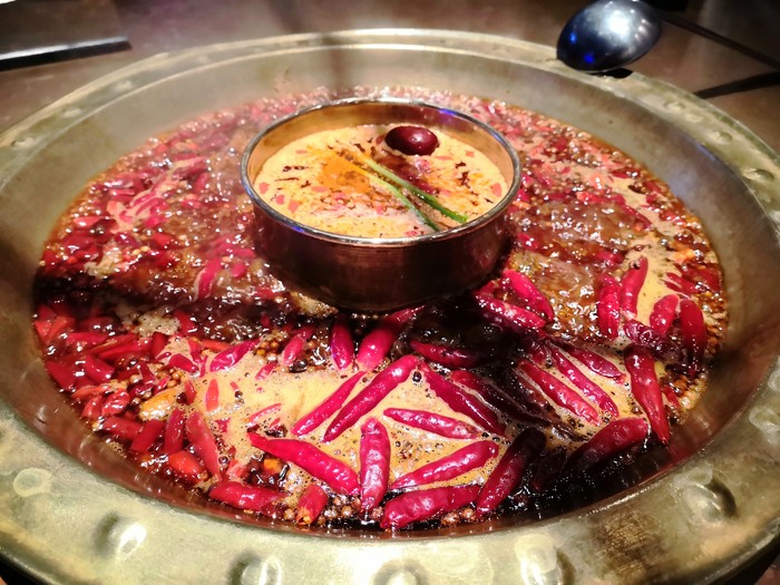 红红的火锅底料,麻辣鲜香,还好我们要的是鸳鸯锅,能稍稍缓解下嘴巴的麻木,浑身热气腾腾,辣的过瘾意犹未尽。