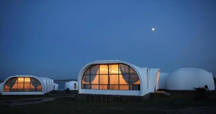 (4)星空房在广阔的草原上,想不想来一次最浪漫的夜晚。好了这个星空蒙古包能满足你,数十个透明的蒙古包紧紧相连,在草原上就像一排气泡,当夜色悄然降临,天上无数繁星点点这时便可躺在里面,抬头便能仰望星河,侧过身就是自己最爱的人。简直是一个浪漫到不能再浪漫的地方了。