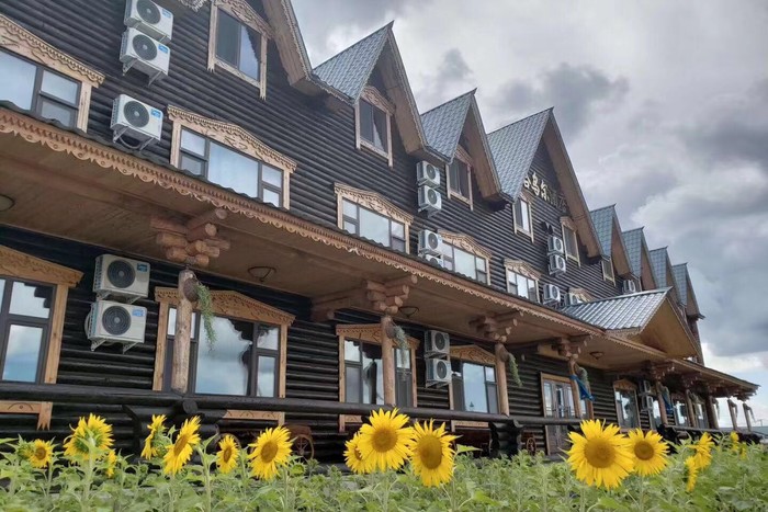 (2)木刻楞酒店作为以俄式风格为基础而生存着的小镇,他们的住宿方面也是地地道道的俄式风情,以木刻楞为主的住房占满了整个小镇,木刻楞是俄罗斯典型的民居,木刻楞在墙裙之下,一般选用大块石料做基础,中间用粗长圆木叠罗或用宽度不等的长条木板钉就成墙壁;上部房檐、门檐、窗檐是背饰重点。