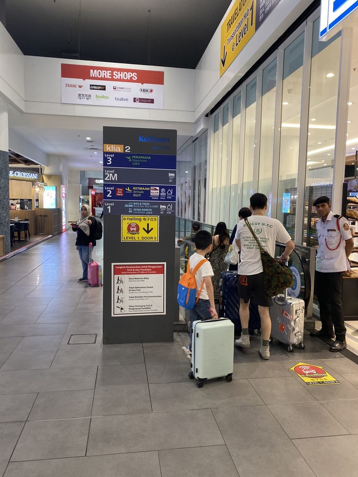 在中央车站「KL Sentral」机场快线要去二楼,而要坐机场大巴的话,则要在靠近出口的地方往下走一层到地下一层。
