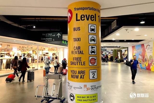 机场大巴的乘车点在KLIA2的Lever 1楼层,很简单就是入境之后,跟随标志Transportation Hub「交通枢纽」一直往外走。