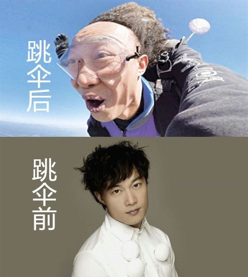 另外一个小tip:跳伞的时候最好控制住你的表情Eason曾经这么冲击你感官的图片真的不是开玩笑的。不要让你的朋友圈从装 B 现场变成斗图现场啊