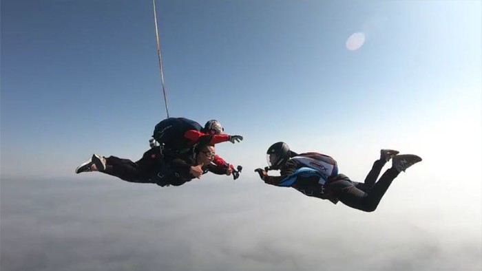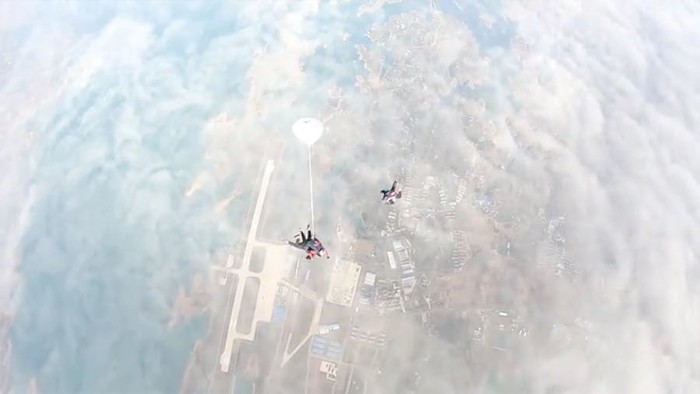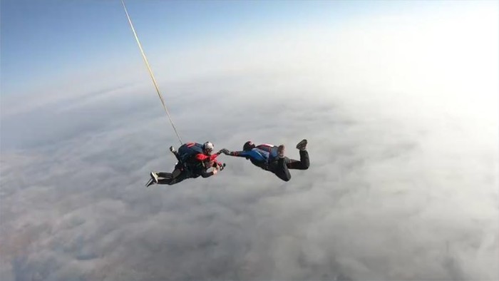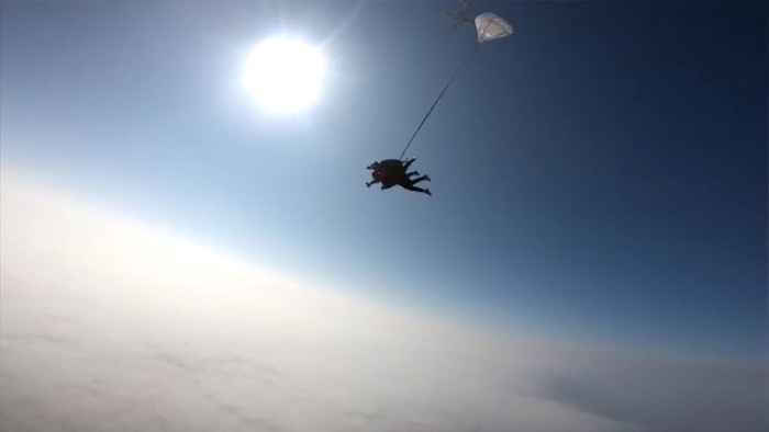 听着飞机的轰鸣,感受着心脏的怦怦跳动,过惯了平静的生活,感受到周围飞旋的气流,心情极其激动。当教练带着我纵身一跃时,我以为我会怕得紧紧闭上眼,但是从未感受过地兴奋让我不想放弃过程中的每一秒。