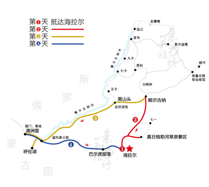 海拉尔-恩和-临江-莫尔道嘎-黑山头-满洲里-海拉尔