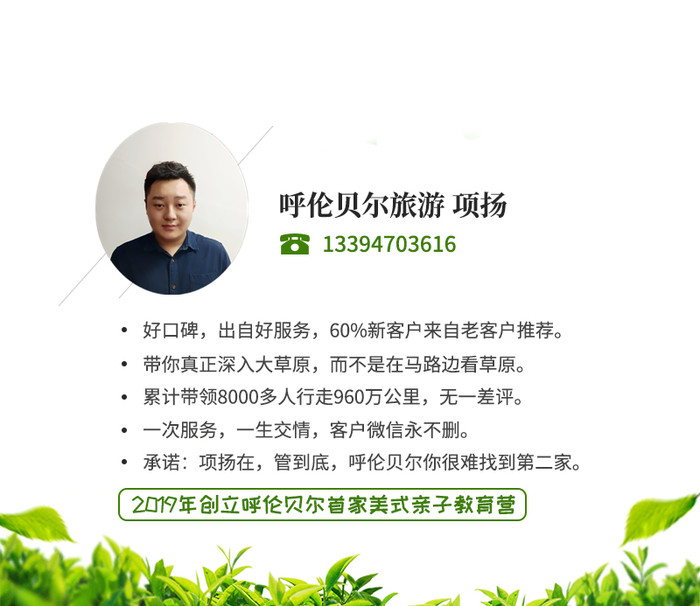 这类人群在我看来是最理性的人群,无论是落地租车,还是开车来到海拉尔,约上几位驴友,喊上几个家庭,组队雇一个向导,不仅在价格上可以省钱,而且真正实现了自由行畅游呼伦贝尔,没有旅行社各方面的约束,驾车穿越草原深处无人区。一个好的向导可以为您提供: