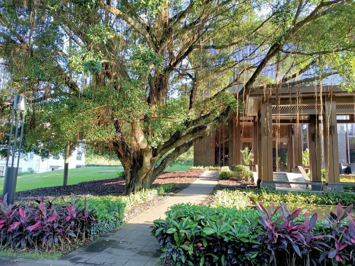 酒店的住宿区跟酒店前台区域是分离的,但是也不用担心,距离不远,而且有观光车可以免费接送。