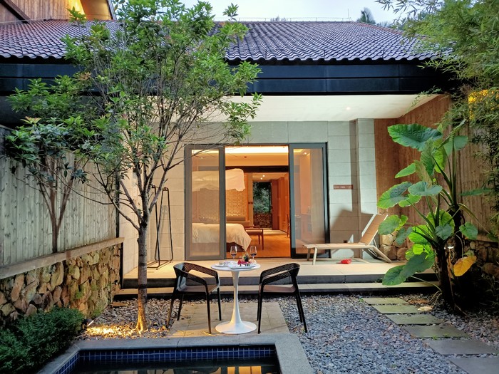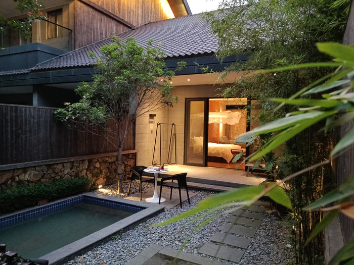 环境是比较清静的,舒适,每个房间都拥有独立的庭院,还有泡池,设施娱乐都完善。