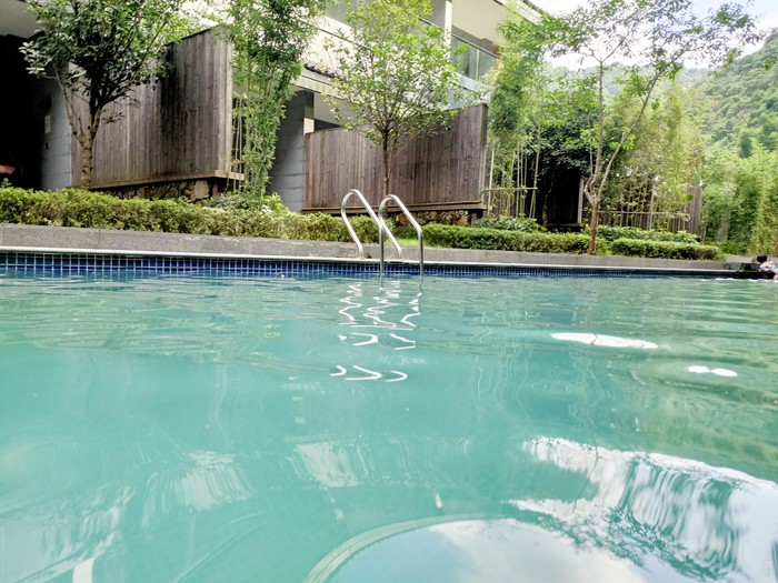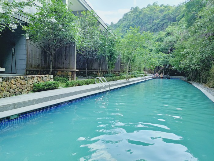 蟠龙谷酒店有两个泳池,一个是天然的泉水泳池,水比较冰凉,泳池比较深,适合会游泳的旅客,另一个就在酒店的3幢后面,隐蔽性较好,只有住客才能进来游,池水干净,适合所有人,带小孩的更好啦,炎热的天气,不会游泳,泡澡也是一件非常消暑的事情!