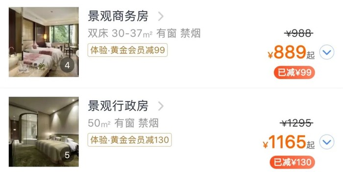 携程上单独购买景观行政房1晚、景观商务房1晚,至少2000+元,现在购买套餐便宜600+元!