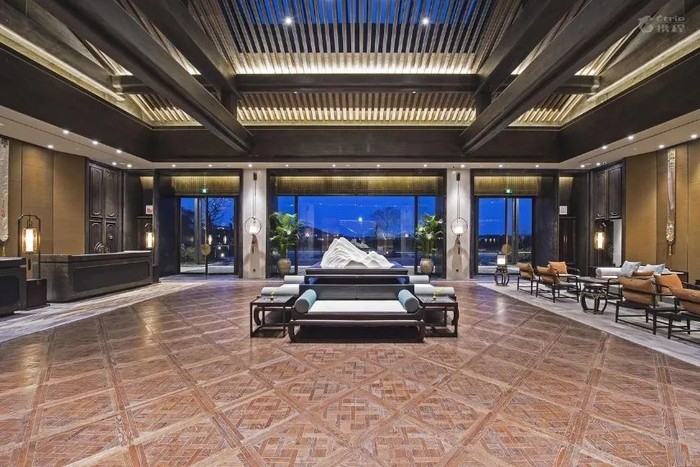 韩岭院在进行空间改造时,完整地保留了民居的外立面、木质框架。乌头门、落地长窗、格门、栏槛.....满是宋代元素。家具采用名贵的金丝楠木打造,力求还原宋代民居雅致天然之美。