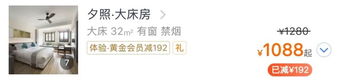 携程上平时同店同房型住1晚1888元,现在购买套餐不仅便宜300元,像下午茶这些相当于白送!