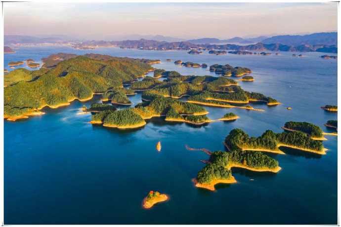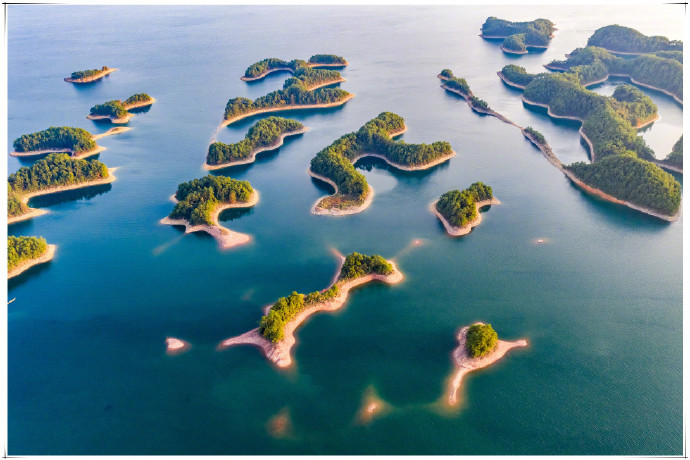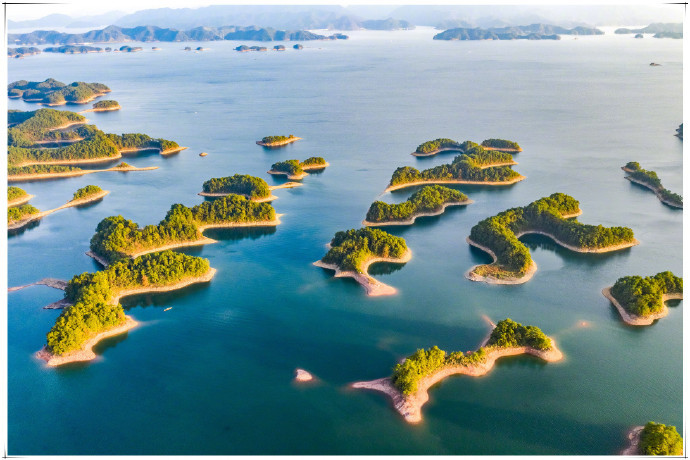 位于浙江杭州的千岛湖,与加拿大渥太华西南200多千米的金斯顿千岛湖、湖北黄石阳新仙岛湖并称为"世界三大千岛湖"。