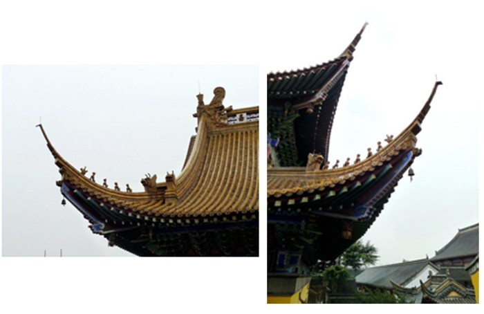 飞檐角下有八只铃佩叮当作响,意为祝愿风调雨顺,人民幸福。