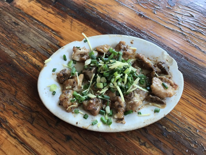 黄鳝煲仔饭:不要葱记得下单的时候说,因为一上桌就会自动帮你把饭都拌均匀。黄鳝是已经去骨的,只有肉,不过是带血的,吃到的时候还是会有点苦。总的来说非常好吃,非常推荐,很香,黄鳝和饭的比例真的刚刚好,煲仔饭的灵魂是饭焦这里也做很好,是那种轻可以易离煲黄金香脆的饭焦,调味也调得很好,就是越吃越渴。