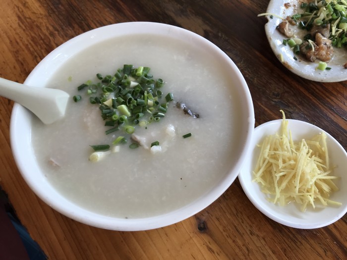 生滚粥:可以任选两种食材,我挑了鱼和竹肠,粥底是好吃的绵粥,竹肠和鱼都很滑很好吃分量也很多,我们5个人都能平均分,不过鱼是有大鱼骨的那种。我建议点竹肠和牛肉(我抗拒不了竹肠)。