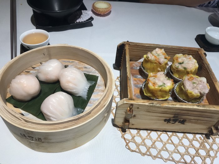 味可道虾饺皇和虫草花烧麦皇:都好吃,特别是虾饺皇,里面起码有3~4只新鲜肥美的鲜虾,真的做到了皮薄馅靓。
