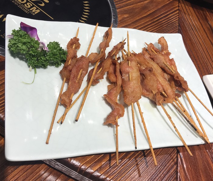串烧猪颈肉:就普通串烧猪颈肉,吃2串就很腻了。