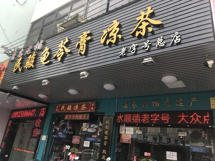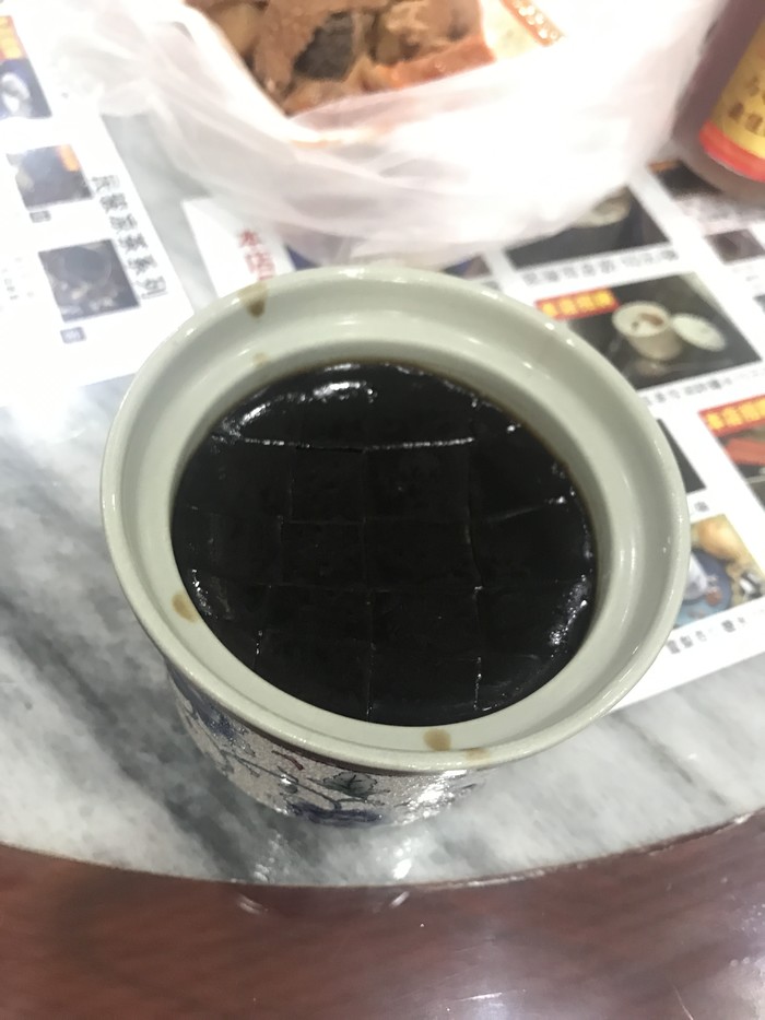 民骏龟苓膏凉茶点了金装龟苓膏:推荐!跟我在外面吃的贴着龟苓膏标签的黑凉粉不一样。真的有凉凉的清热感,吃起来也有一点点药材味,拌着蜂蜜吃不苦,很适合刚才吃完炸牛奶的我们,25块钱也不贵。大神龟苓膏界天花板认证!