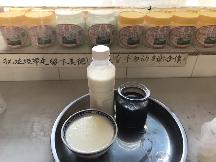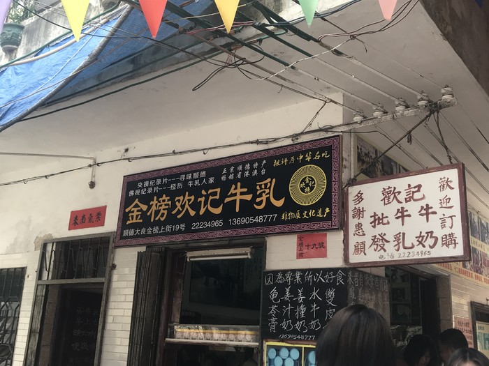 吃完就赶去吃最后两家:金榜牛奶店和周大娘牛乳。金榜牛奶店我们到的时候大概才3点多吧,就已经贴着"买完"2个大字关门了,估计要一早去才能吃到吧(大众点评写11点开门),双皮奶和水牛奶是这家首推,希望大家都能吃到。我们只能直接去附近的周大娘牛乳,分店很多,金榜步行可到。