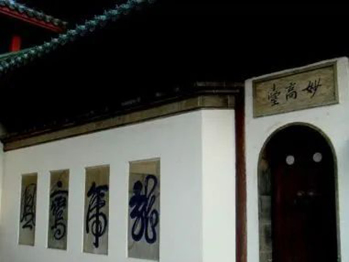 “妙高”是梵语“须弥”之意译。刘编《金山志》(镇江金山寺)载:“妙高台在伽蓝殿后,宋元祐僧佛印凿崖为之,高逾十丈,上有阁,一称晒经台。”妙高台东西南三面均是峭壁,云雾四合,如置仙境。金山在江中时,可以俯视四面长江,滚滚东流的江水至此,被碧玉浮江的金山迎头劈开,分为两股,向东奔腾而去,气象万千。宋代楼钥《妙高峰》诗:“一峰高出白云端,俯瞰东南千万山,试向岗头转圆石,不知何日到人间”。几经兴废,明代僧适中,清代薛书常继重建,如今的妙高台为1991年慈舟法师主持重建。