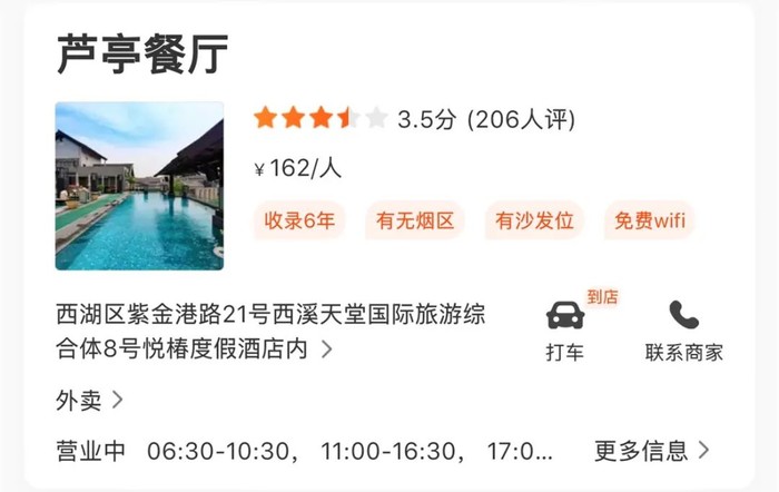 携程上平时同店同房型住1晚1746元(含早),现在购买套餐便宜188元。顺便看了下套餐中的芦亭餐厅,人均160+元。这样算下来,购买套餐比单买要便宜500+元!