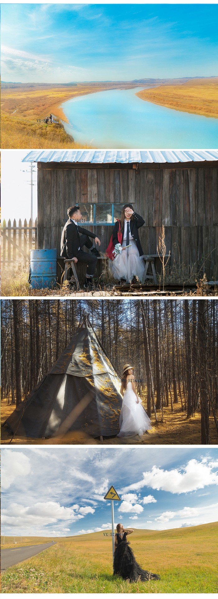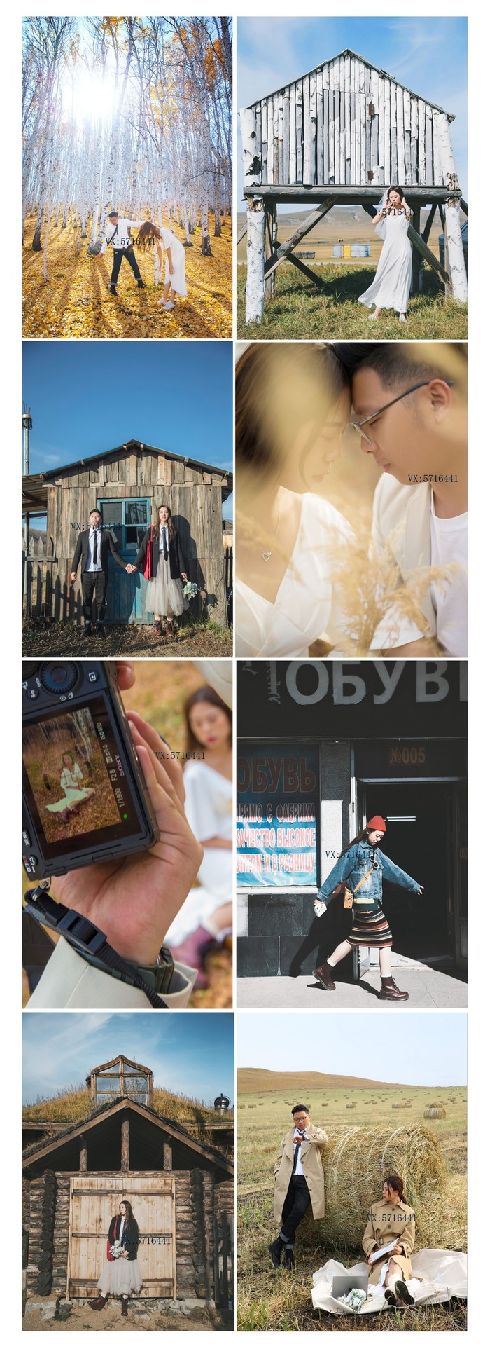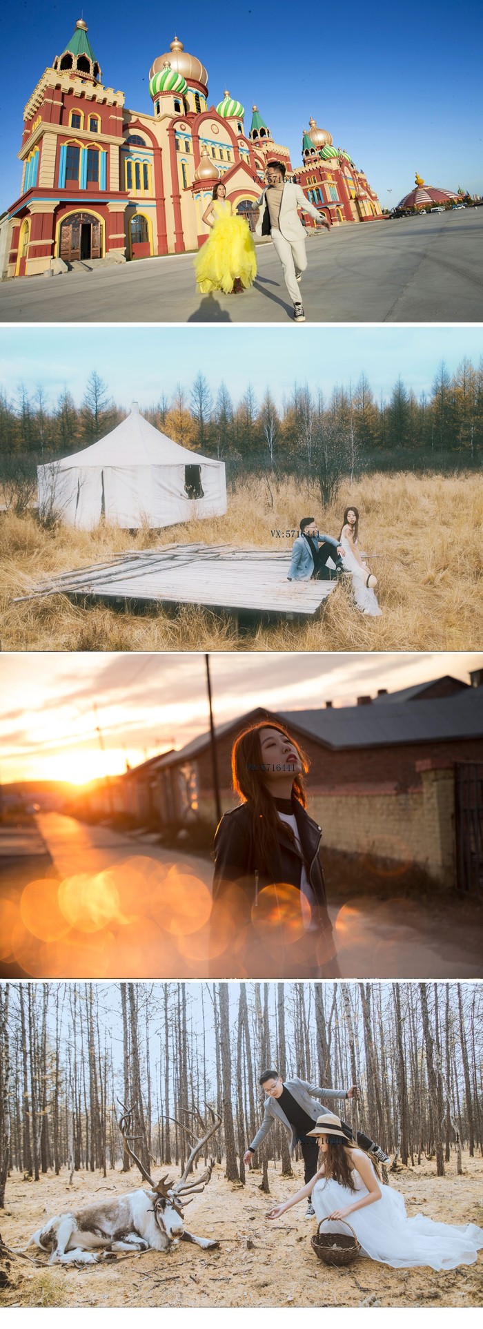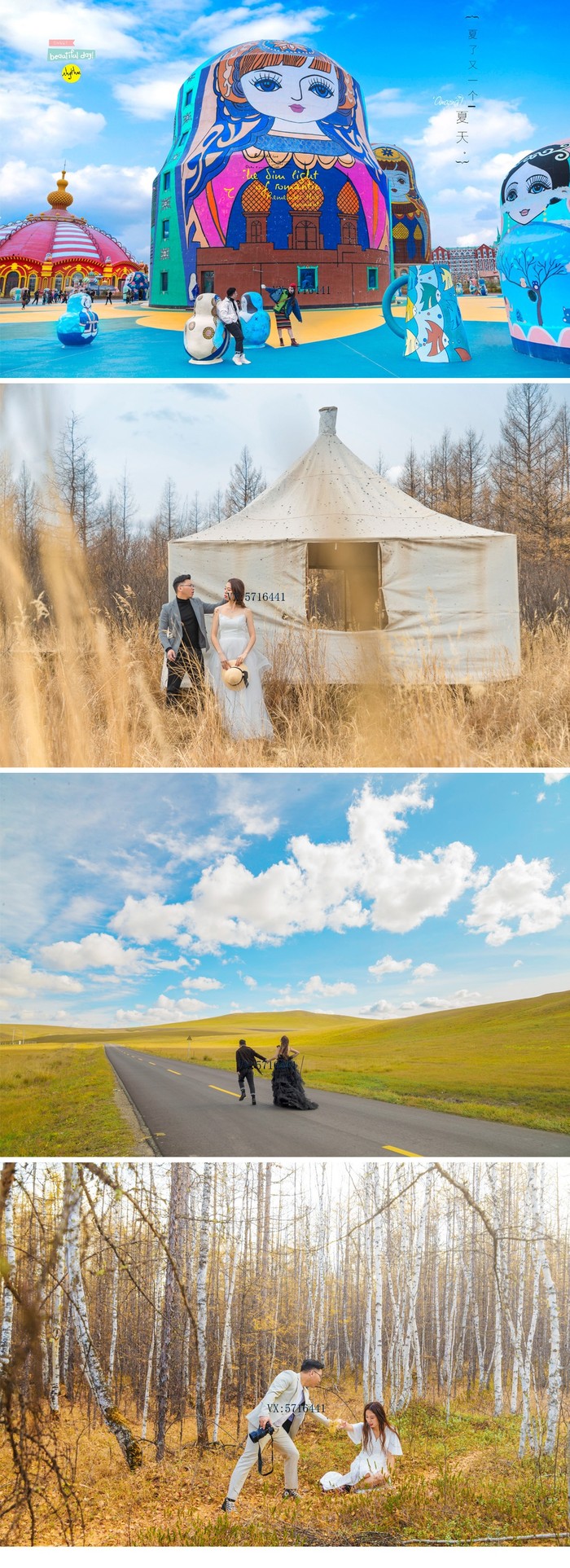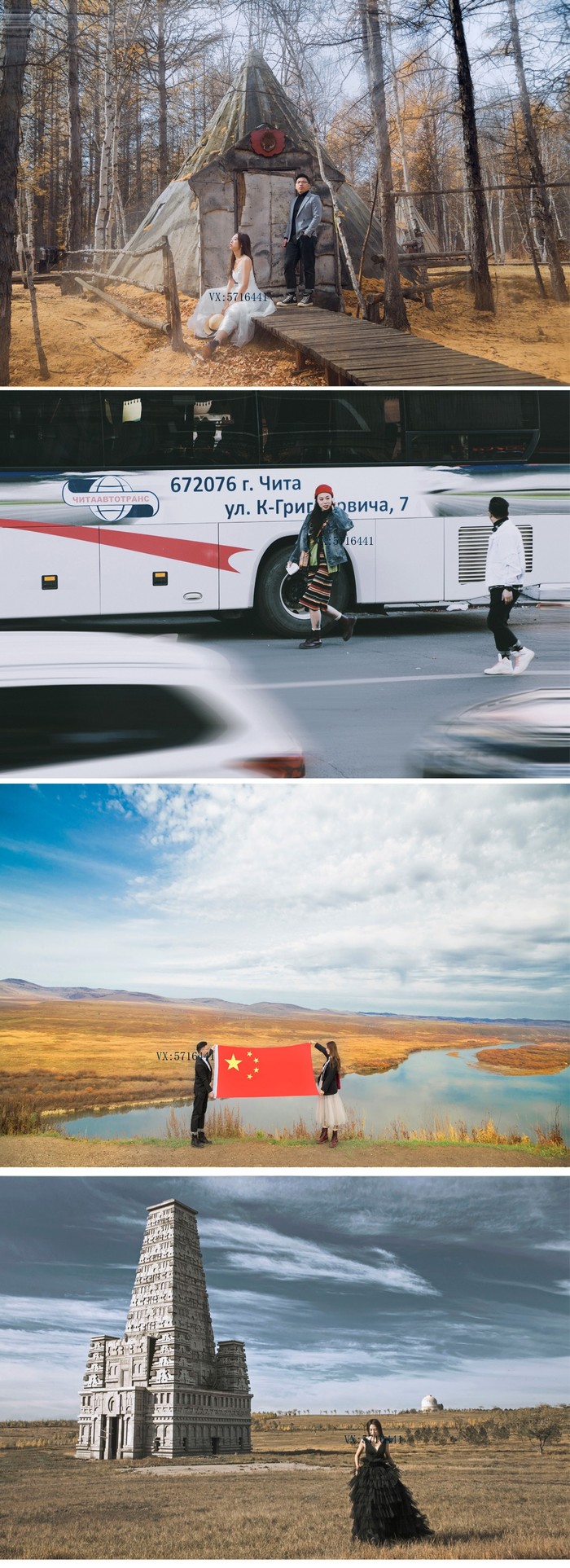 2019年9.28 我们出发啦~~~~短短两小时的飞行,7日中午 沈阳飞抵海拉尔下飞机的第一个感受就是,天好蓝,云很轻,大团大团的云彩飘向你 雪白雪白的好像棉花糖(*^__^*) 我们是订了呼伦贝尔全程路线的旅拍,一下飞机提前定好的租车行来接我们了,服装我们这次全部自备,因为我想着旅拍就是记录我们的幸福感,告别传统模式的拍摄。萌生旅拍的想法已经很久,我喜欢用照片去回忆,因为不管我们是否愿意,都必须要面对岁月催人老的事实,如果不记录下来,我很怕忘记曾经这段美好的旅程。旅拍路线:第一天 海达尔出发,途径莫日格勒河--额尔古纳湿地第二天 白桦林景区 出发7卡8卡9卡 恩和 入住室韦小镇第三天 临江 莫尔道嘎 敖鲁古雅使鹿部落 根河入住第四天出发边防公路 满洲里 套娃广场 俄式建筑 我们比较喜欢俄式建筑 第五天呼伦湖 返回海拉尔 旅拍的路线首要原则就是避开游客和各种路人甲乙丙丁,所以去的景点比较少,很多地方我都叫不出是哪里,摄影师有很多秘密小众场景,很是哇塞,好看不说还省去了去进景区的费用最深的感触就是每天都好像游走在画中。这也让我们看到了更多游客看不到的景色,比如沿着金帐汗的景点再往前开一点可以看到完全一样的广袤草原,运气好的话还能碰上优哉游哉来喝水的马群~四驱越野深入草原穿梭,上坡下水走过泥沼溅起的声音会让人莫名的兴奋起来。在这里会看到漫山遍野的羊群,随便拍照都是桌面级。我已经来不及拍照,只想将心融化在大草原,尽力的去看去感受,去体会风吹草地见牛羊的美景。一路上拍拍停停·沿途风景 真正的美景真的就在路上~白桦树作为额尔古纳的市树,被誉为"纯情树"。传说成吉思汗的千军万马途径此地时,认为这是吉祥的化身,并在这里驻足休息,安营扎寨;而来这里采伐的俄国人在赞叹美丽的同时亦放下屠刀,于是,一首优美动人的俄罗斯歌曲《白桦林》应运而生,歌颂了至死不渝的爱情。坐电瓶车的时候突如其来的下了一场大雨,雨后冲刷的白桦林显得更加的干净纯洁。门票55元,电瓶车15元,可团购(PS 美团比较便宜哦),军人学生证半价可用。敖鲁古雅驯鹿之乡-----中国唯一的使鹿部落如果有一张照片能勾起你去一个地方, 那么我想驯鹿园一定是其中一张。门票70元,喂鹿的苔藓10元, 其实鹿并不算多,20头左右而且在最深处,摄影师说以前驯鹿很多都在刚入口的地方要吃的,现在真的是越来越少了,这里曾经是一个与世隔绝的世外桃源,现在已然尝遍人间烟火了。拍鹿的人很多,摄影师与驯鹿的师傅攀谈顺便塞个二三十块或者两盒烟,就把鹿牵到人少的地方拍照。不要去触碰鹿角,因为犄角上遍布毛细血管。鹿很温顺,可我还是"适应"了好一段时间。毛茸茸的身子,纯净的眼睛,它们是中国北端林中的精灵~边境小城室韦,作为我国唯一的俄罗斯民族乡,这里聚集着大量俄罗斯族和华俄后裔,小城不大,位于呼伦贝尔的西北面,四面环山,与俄罗斯仅一水之隔。这里大部分仍保留着较为完好的俄罗斯文化和生活习俗,居住的是典型的俄式木砌房子"木刻楞"。临江在我的概念里,与其说是一个景点,不如说这里完全就是躲藏在室韦身后的一个静谧村庄的模样,安静的牧民,辉映的额尔古纳湖畔,绝美的夕阳,这是一个身临其境就会觉得舒服的地方,住在木刻楞房间里推开窗,就能看到一河之隔的俄罗斯。在临江的最高处对岸就是俄罗斯,我们爬到最高处准备拍摄时发现很多人都拿着国旗,才恍然大悟原来是10.1国庆大阅兵,坐在石头上拿着手机看国庆大阅兵,在边境看阅兵,竟有一种说不出的神圣感,拍摄时老公偷偷拿出钻戒向我求婚,这一段无法用语言表达出来...边防公路向黑山头出发,边防公路,俗称卡线,堪称"中国最美道路",沿途的景色是呼伦贝尔草原中数一数二的,真的是太美了~黑山头是额尔古纳市的一个小镇, 曾经记录了蒙古族的显赫历史, 当年成吉思汗铁马金戈, 曾在这里威风凛凛地碾过…素有东北小巴黎的满洲里真的满大街都是俄罗斯人和车,还有俄罗斯的建筑,夜景真的很美~~~至此,草原之行结束了,不得不说,有点小累,但值得。旅行是会上瘾的,它可以让你看到不一样的风景,结实不一样的同伴,哪怕只是一面之缘也会给你一些感想;旅行会让你认识一个全新的自己,可以发掘你在平日生活中一些被埋没的潜力,也可以让你一次一次成长最后非常感谢摄影师,一路为我们拍摄,并记录属于我们的幸福,有想旅拍的可以加摄影师VX:5.7.1.6.4.4.1强烈推荐,非常满意的一次拍摄。我的旅行 未完待续.....