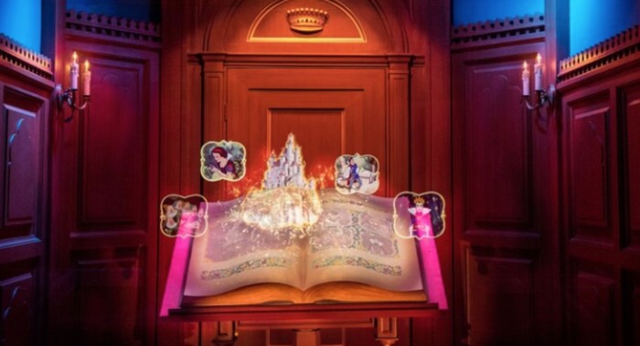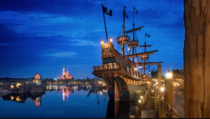城堡背后的湖上面,坐船穿梭一个个迪士尼经典故事布景(小美人鱼、阿拉丁、美女与野兽等),船很大,装几十个人,最好晚上,因为有灯光.
