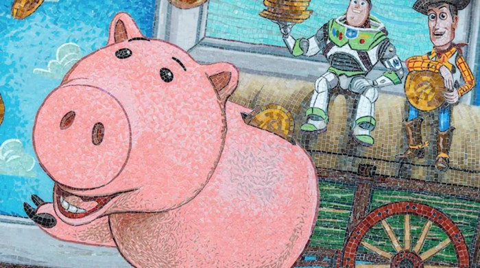 十二生肖壁画,用迪士尼动画形象替代里面的动物,比如:木须龙代表生肖龙,阿布代表生肖猴子.