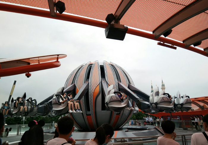 旋转、升降,升到最高位置,能看到迪士尼全景.