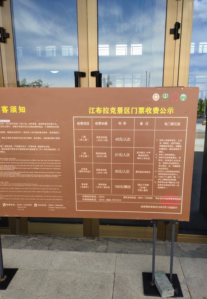 继续往前开,到游客服务区停车场,带上行驶证去游客中心购票。卖票的小姐姐会很礼貌的问你是否有医生护士、警察或者军人武警,应该是可以减免。具体信息见下图: