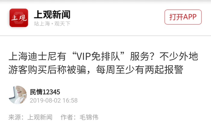 上海迪士尼有“VIP免排队”服务?不少外地游客购买后称被骗,每周至少有两起报警