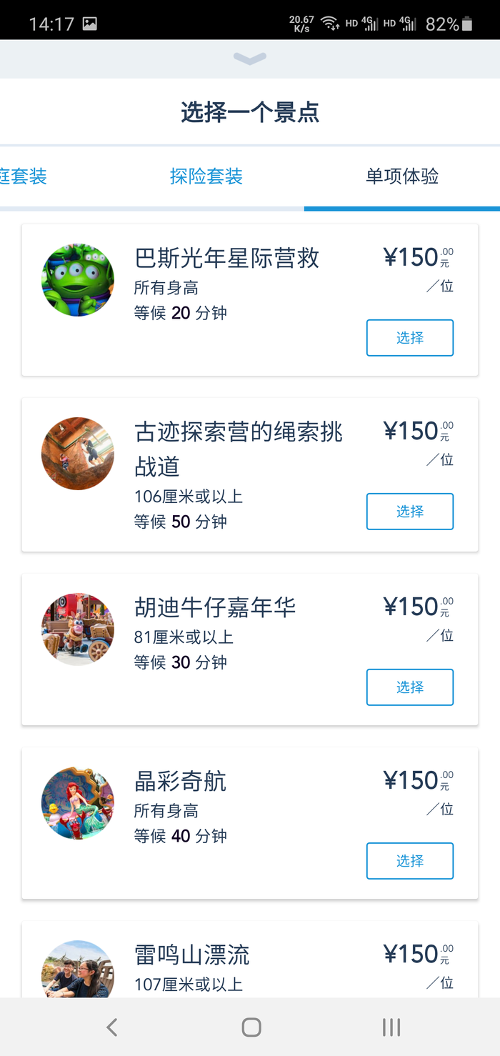 2.想不排队只有购买“迪士尼尊享卡”,比如下图“巴斯光年星际营救”,花150元,就能不排队直接玩;不花钱,排队20分钟才行; 或者起床非常早.查看攻略:
