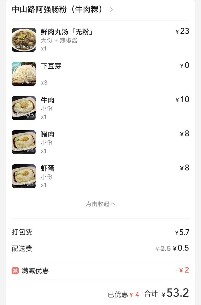 订了这家30分钟送达。味道也还可以,可能第一次吃汕头肠粉,觉得很特别。鲜肉丸汤里面的牛肉也挺鲜。