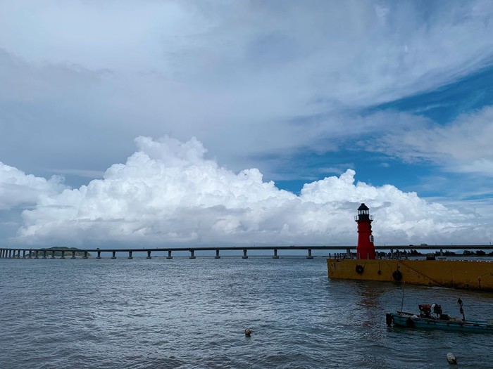 出了南澳大桥收费站的右手边,可以停车在网红景点红色灯塔游览区拍照。(停车15分钟内免费,5块一个钟)