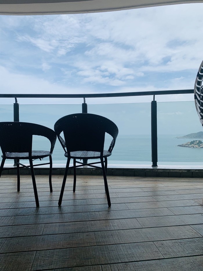 早上一早起床,收拾行李,在阳台看看大海,拍拍照。