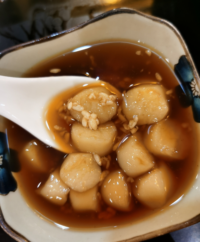 手工汤圆:8元/碗,热,小碗,川渝特色,红糖水+醪糟+手工实心汤圆.