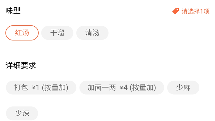 扫码点餐,可选少辣椒、清汤、红汤、干溜(没有汤);量少,价格偏贵,人均消费12-50.