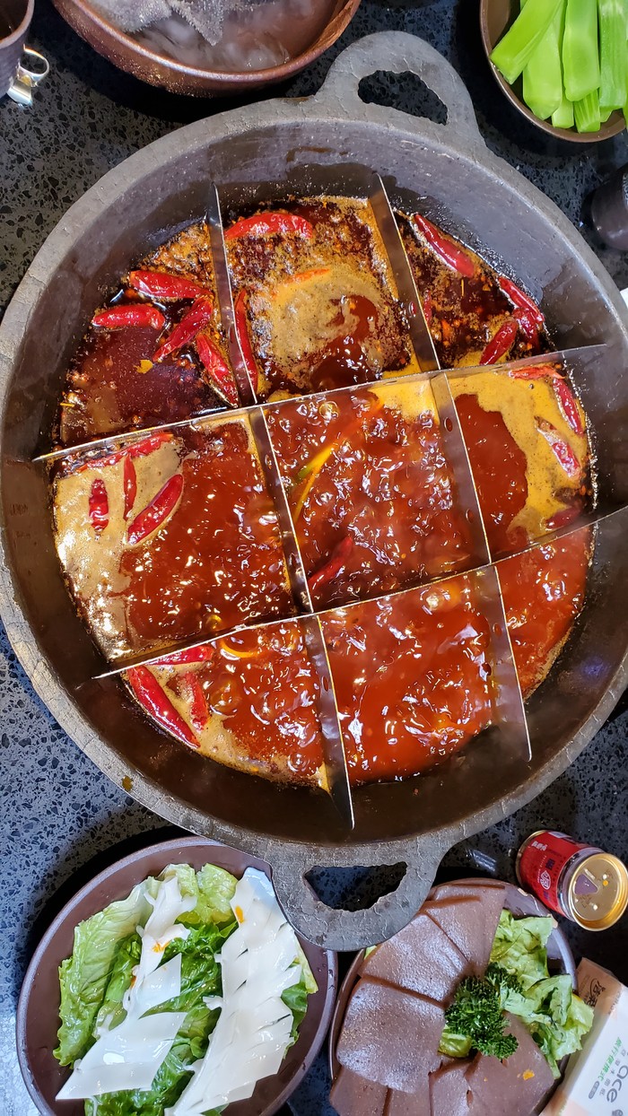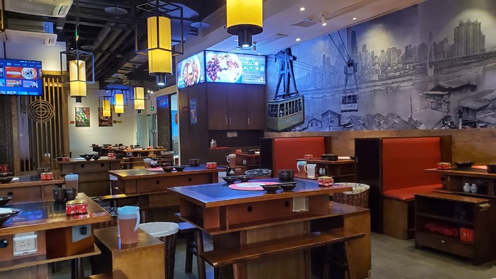 网红,人气非常旺的火锅店, 分楼上、楼下.