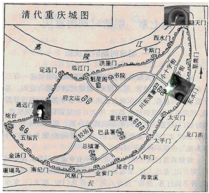 老重庆有十七道城门。现在还有遗址的是“朝天门、通远门、东水门”,其中“通远门”及城墙最为完整,距离轨道交通1号线“七星岗站”3分钟,从通远门可以去往“山城步道”。