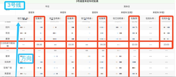 轨道交通3号线,轨道交通10号线,首末班运行时刻表,如下: