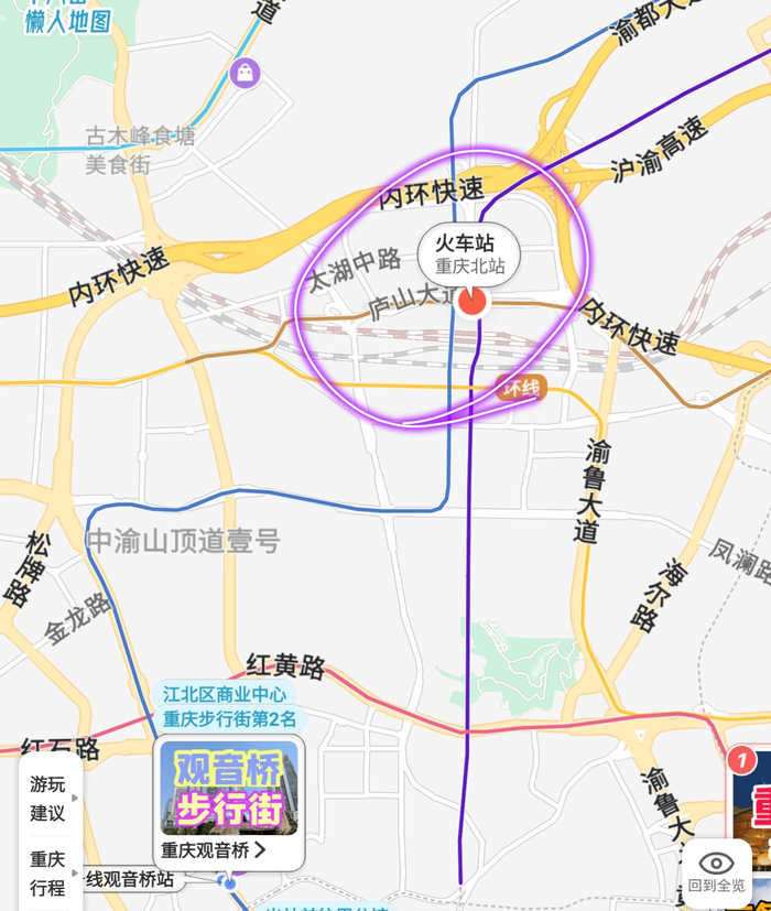 2、重庆西站:轨道交通“环线”,“重庆西站”。